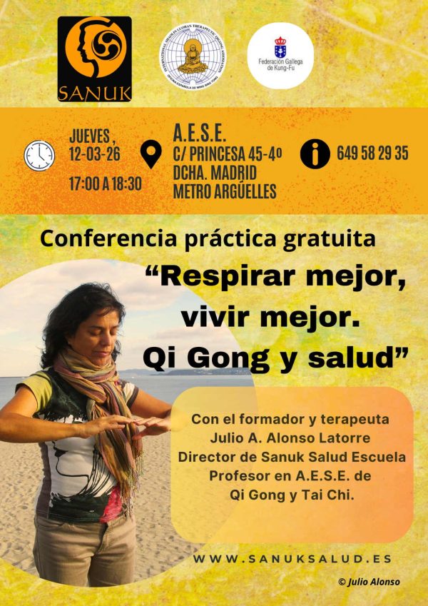 A cargo del terapeuta y formador Julio Alonso Latorre. Profesor de Qi Gong y Tai Chi en AESE. Director de Sanuk Salud Escuela.
